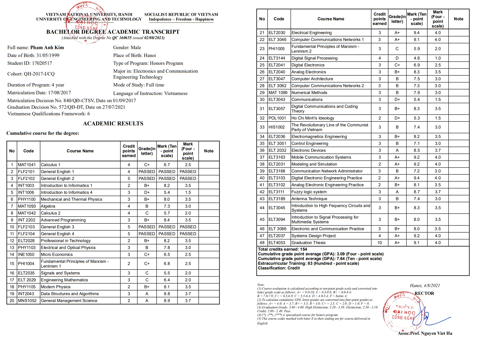 Đại học Công Nghệ - Đại học Quốc gia Hà Nội [08/2017 - 06/2021]