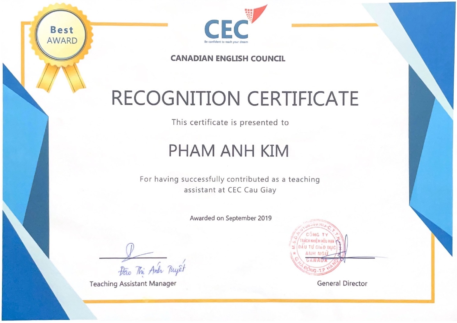 Hội đồng Anh ngữ Canada (CEC) [01/2019 - 08/2019]