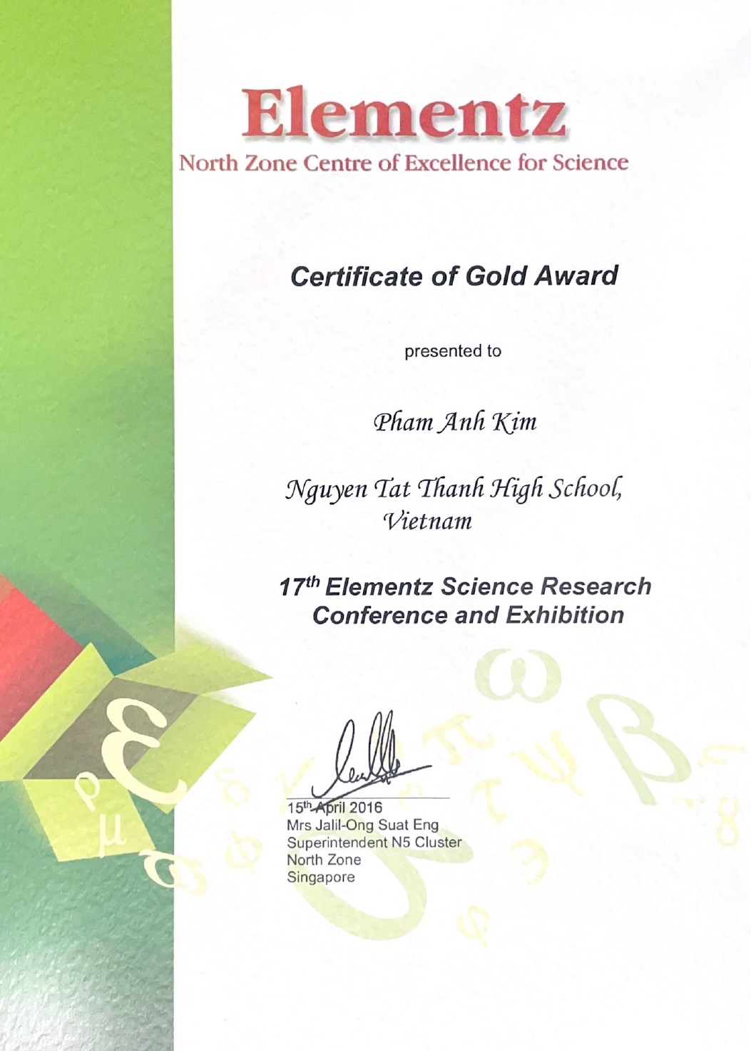 Sang Singapore thi nghiên cứu khoa học [2016] (Gold Award)