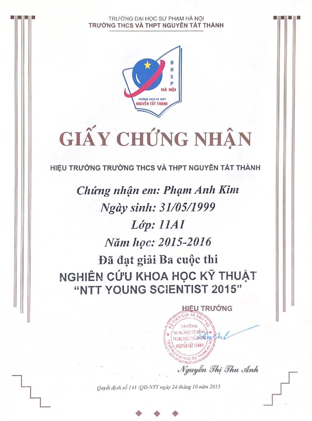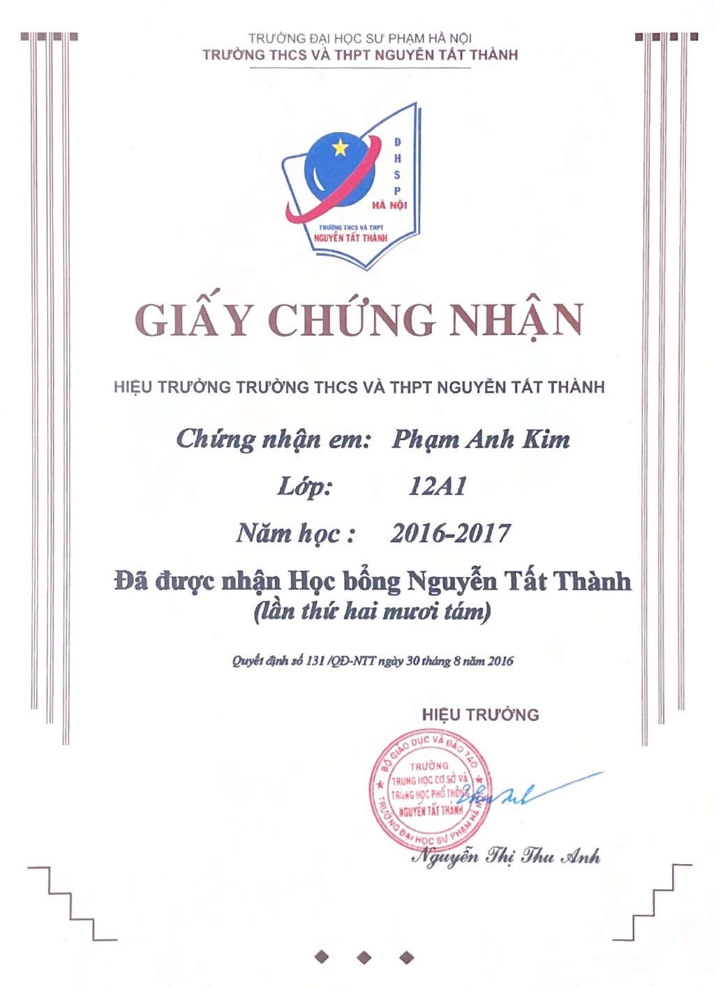 Học bổng Nguyễn Tất Thành lần thứ 28 (certificate)