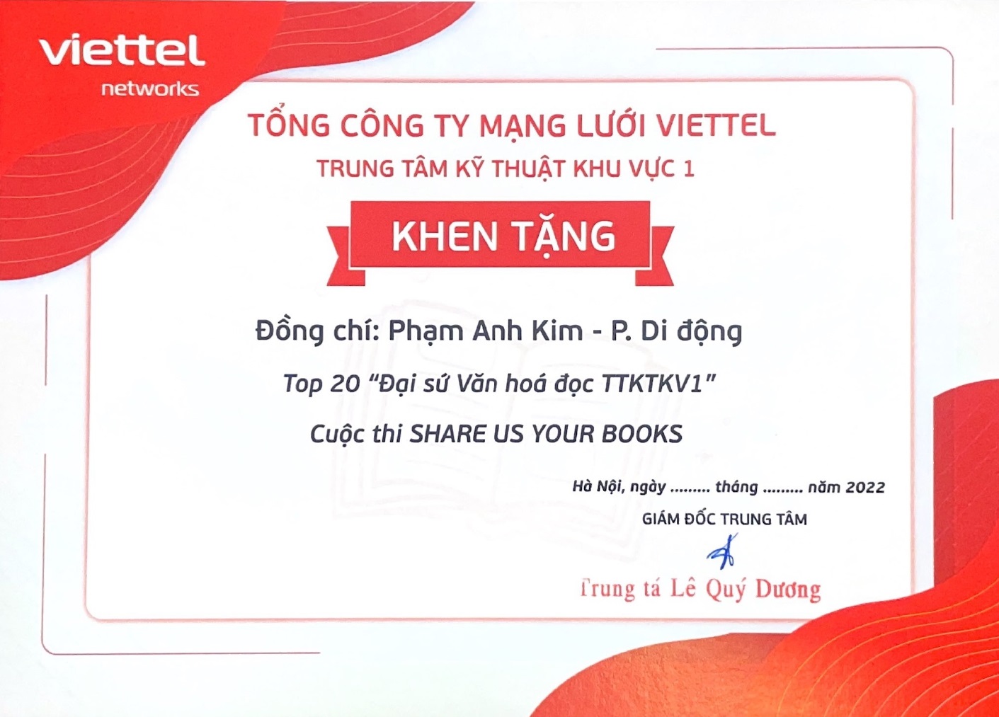 Top 20 Đại sứ Văn hóa đọc TTKTKV1 - cuộc thi Share Us Your Book (certificate)